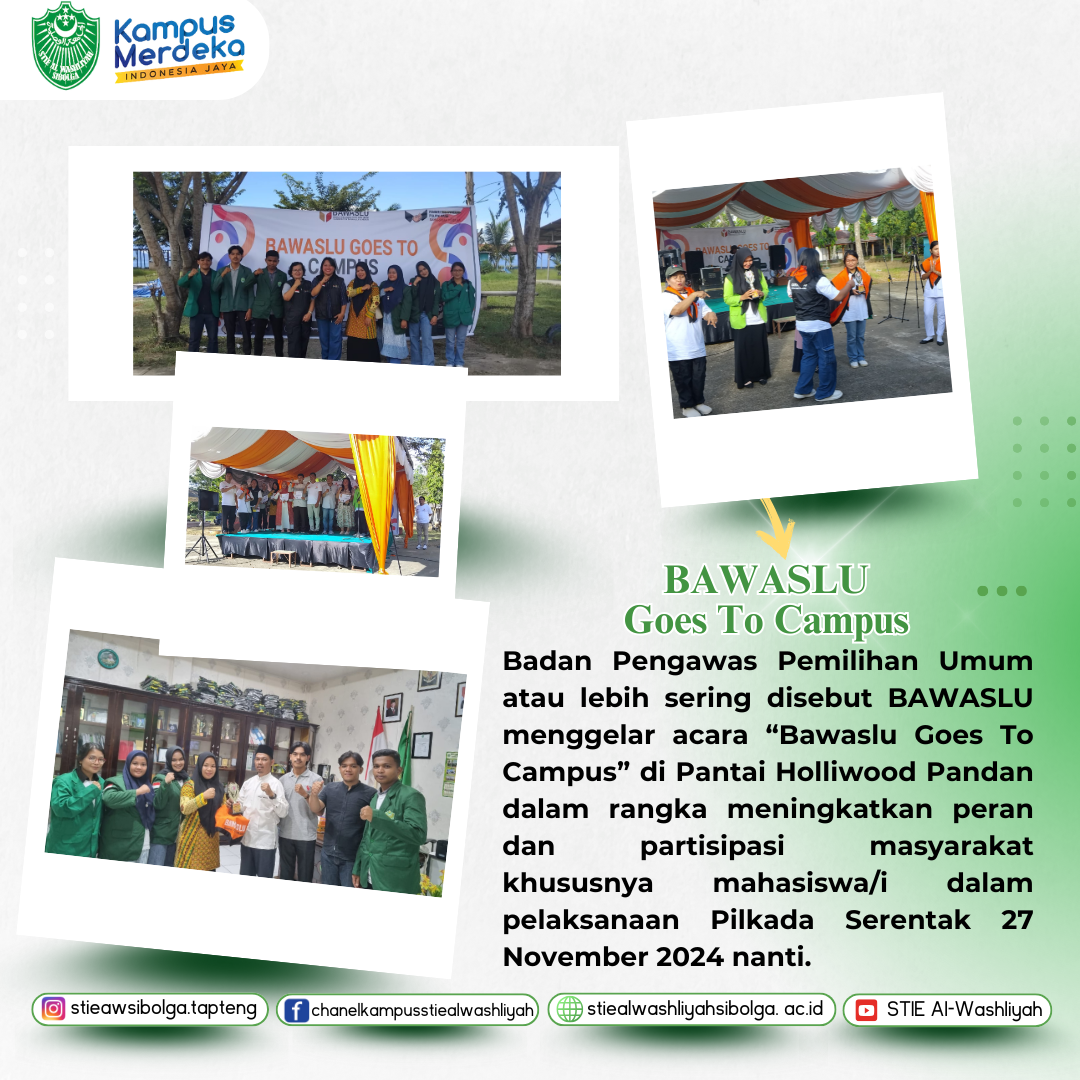 Semakin mendekati waktu pemilihan umum (pemilu) serentak 2024, Badan Pengawas Pemilihan Umum atau lebih sering disebut BAWASLU menggelar acara “Bawaslu Goes To Campus” di Pantai Holliwood Pandan dalam rangka meningkatkan peran dan partisipasi masyarakat khususnya mahasiswa/i dalam pelaksanaan Pilkada Serentak 27 November 2024 nanti.