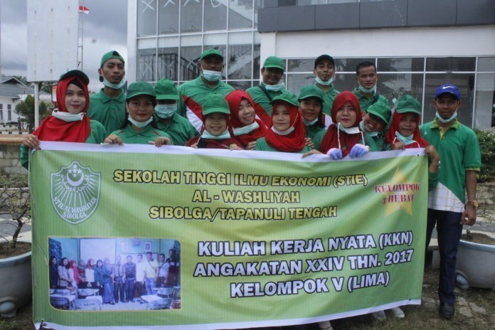 Mahasiswa yang tergabung dalam kelompok V, angkatan 24 STIE Al-Washliyah Sibolga-Tapanuli Tengah (Tapteng), gelar bahkti sosial bagi-bagi masker kepada para...